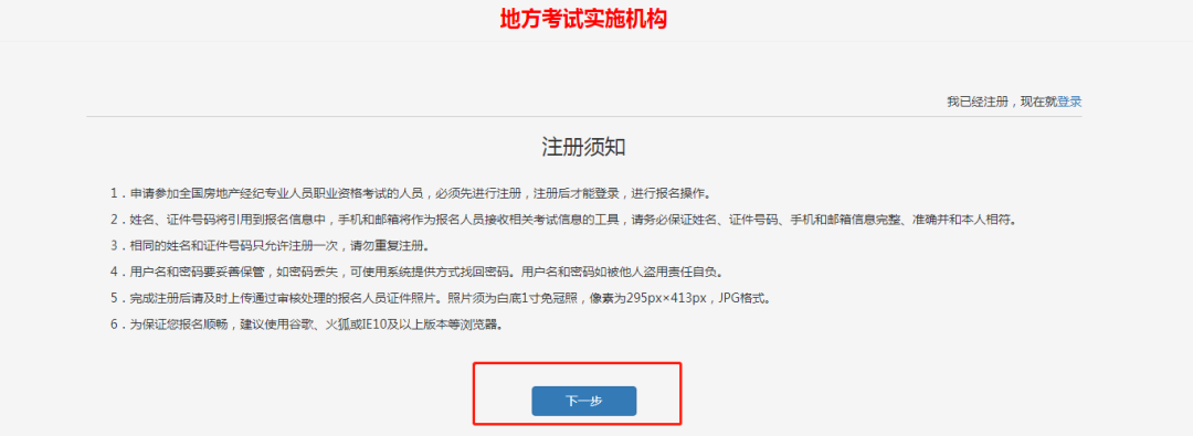 6.仔細(xì)閱讀“注冊(cè)須知”,點(diǎn)擊“下一步”。