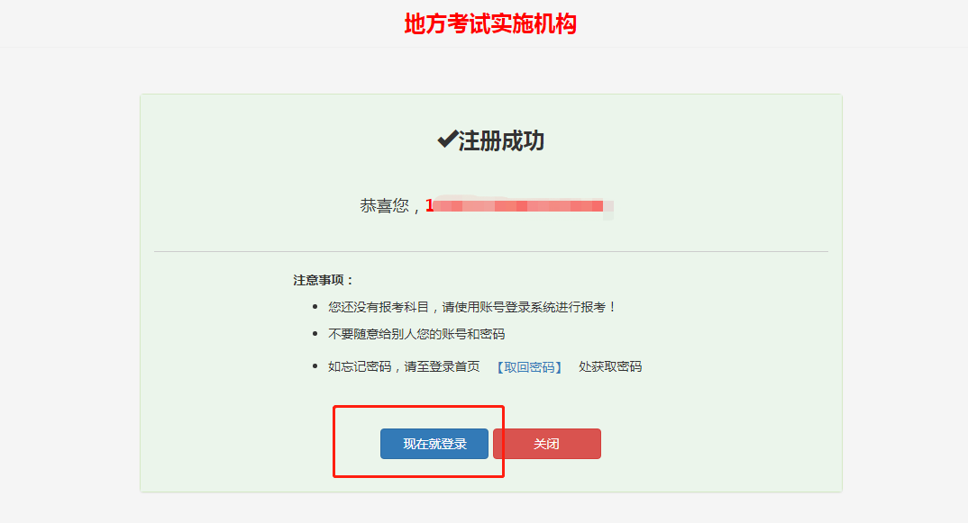 8.注冊(cè)成功,點(diǎn)擊“現(xiàn)在就登錄”。