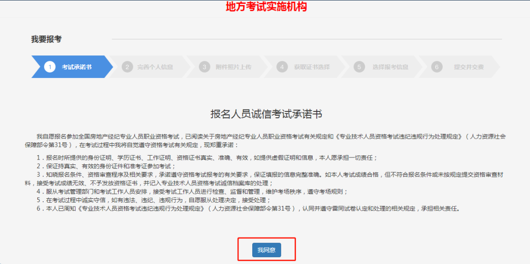 12.閱讀報(bào)名人員誠信考試承諾書,點(diǎn)擊“我同意”。