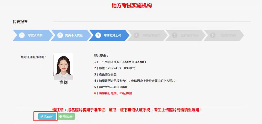 14.上傳1寸白底彩色證件照。(1寸證件照片文件為JPG或JPEG格式,像素為295px×413px,尺寸為1寸證件照(2.5cm×3.5cm),大小約為10KB,底色為白色,不能側(cè)身或帶公司LOGO,自行摳圖、PS證件照無效)
