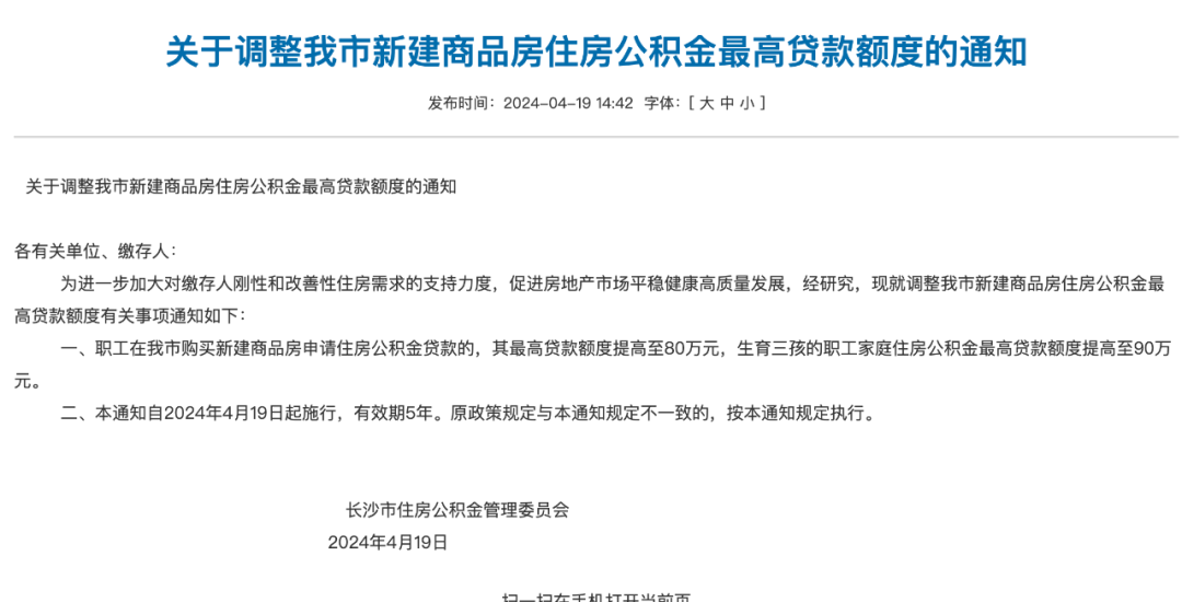 不光如此,就在剛剛,長沙市公積金中心已經(jīng)調高了最高貸款額度!