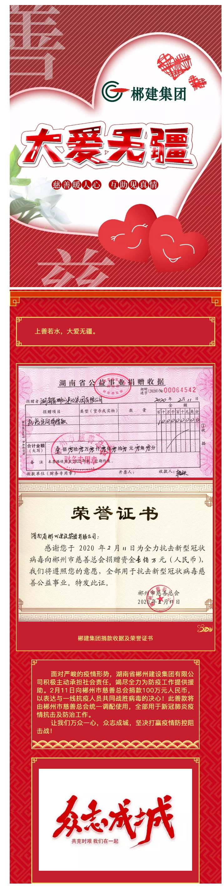 郴建集團(tuán)向郴州市慈善總會捐款壹佰萬元抗擊疫情