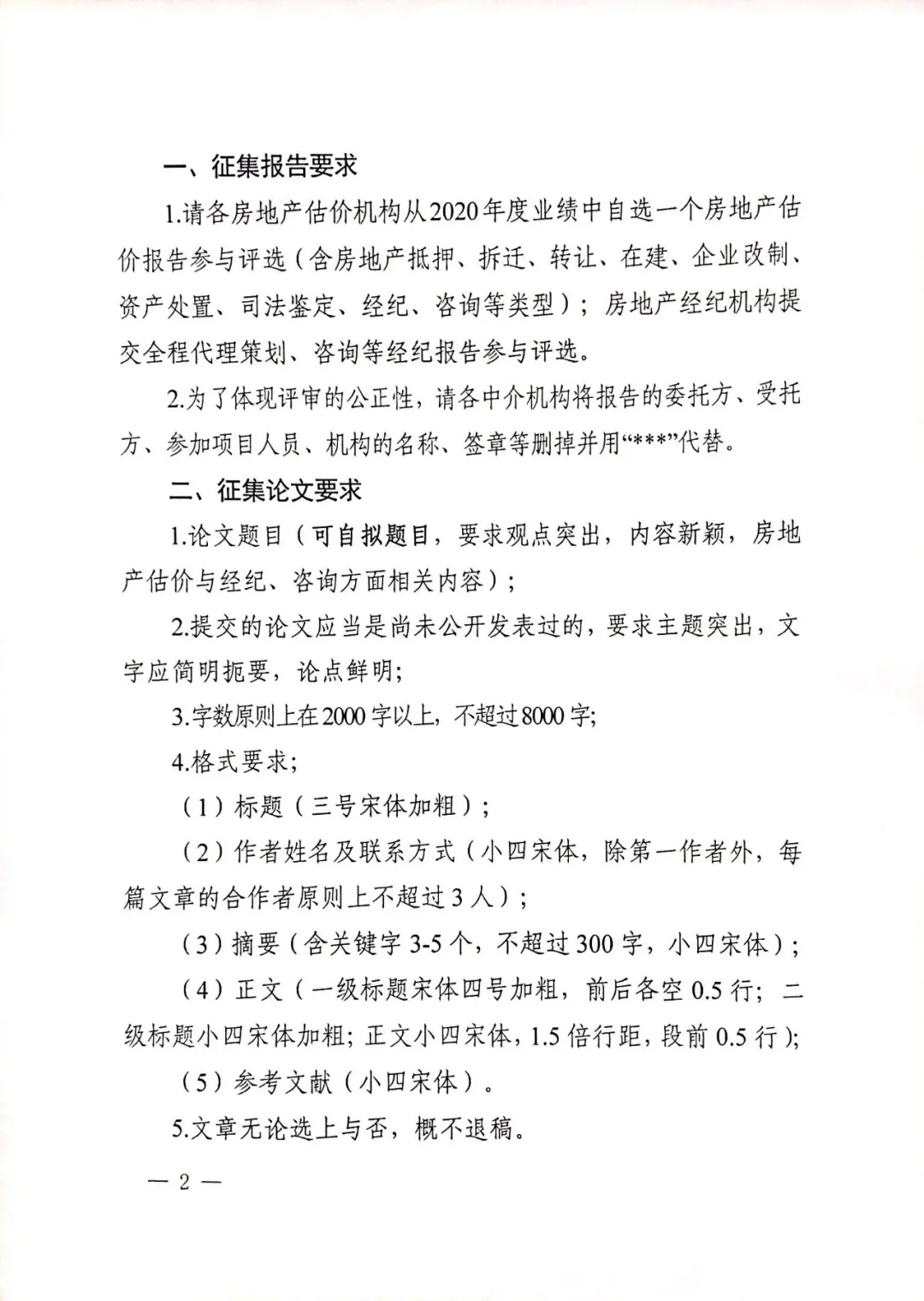 關于征集2020年房地產評估、 經紀、策劃、咨詢優秀報告及論文的通知