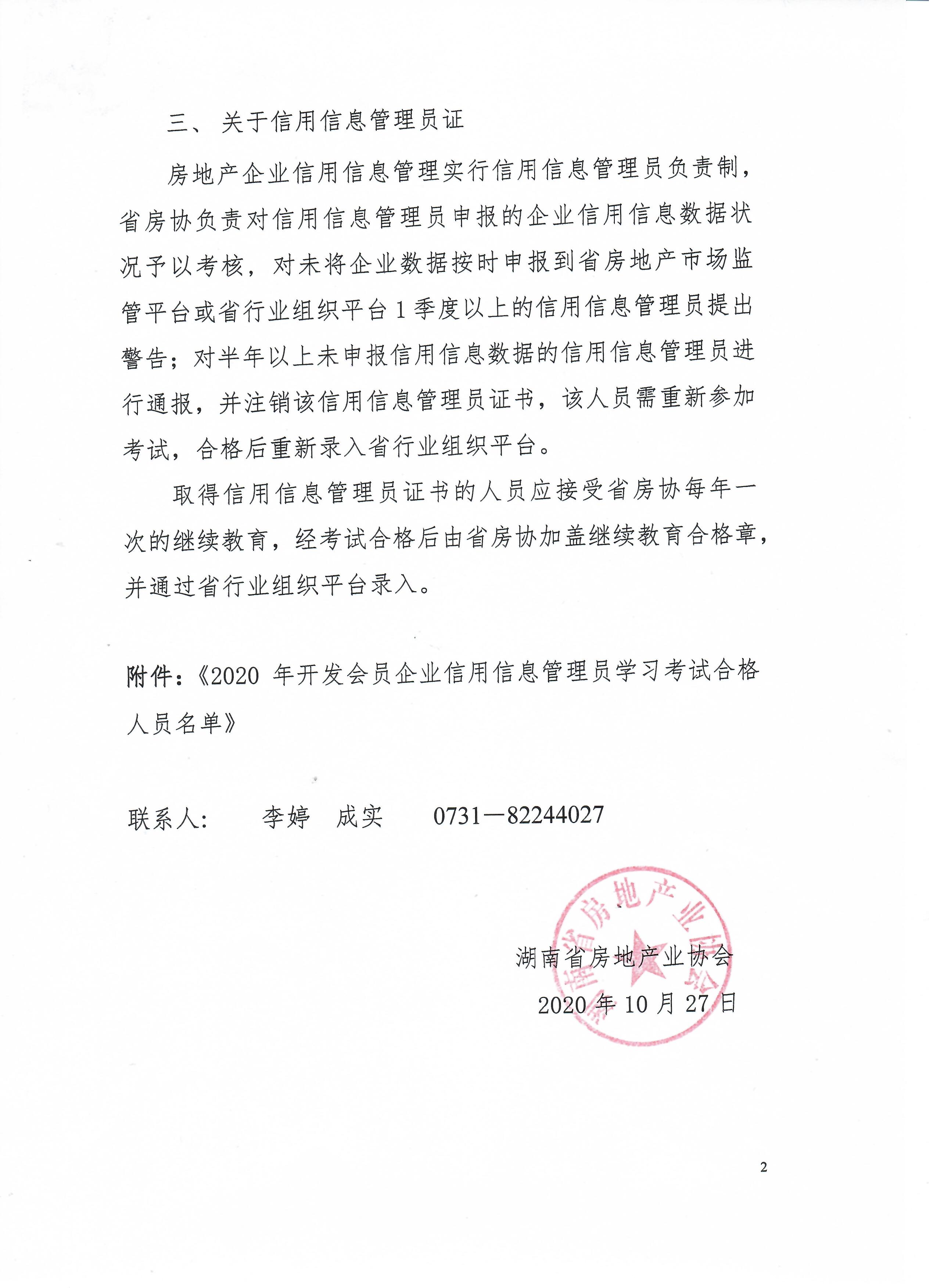 為貫徹落實(shí)《湖南省房地產(chǎn)業(yè)協(xié)會(huì)房地產(chǎn)行業(yè)信用信息管理員制度》,加強(qiáng)企業(yè)信用信息征集,規(guī)范企業(yè)信用信息的報(bào)送,深入開展我省房地產(chǎn)行業(yè)信用信息管理工作,我會(huì)于9月25日組織開展了開發(fā)會(huì)員企業(yè)信用信息管理員考試。經(jīng)過審核,現(xiàn)將考試人員合格的名單及資格證書領(lǐng)取相關(guān)事宜通知如下: