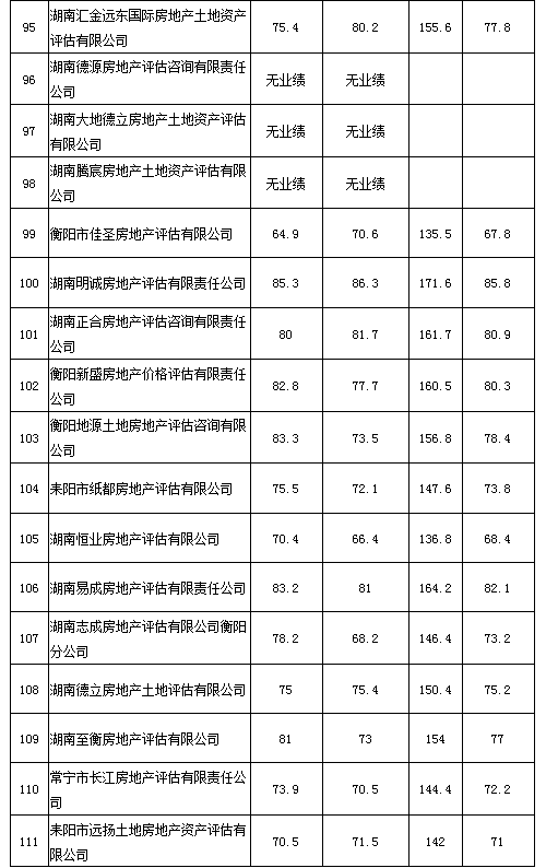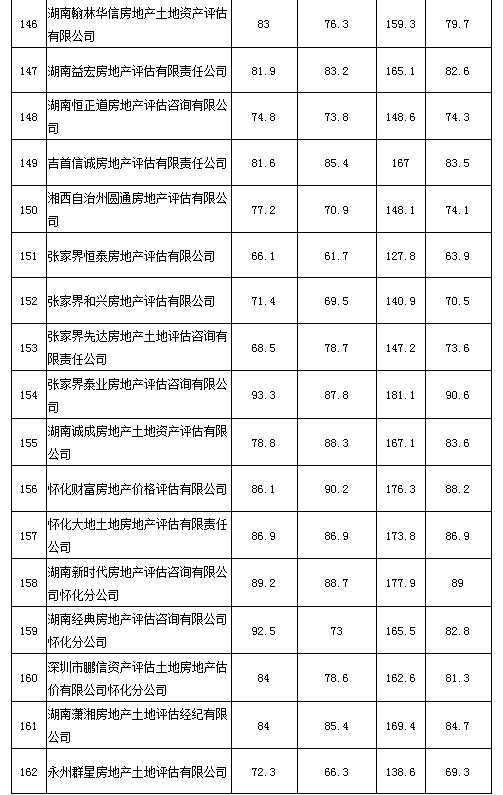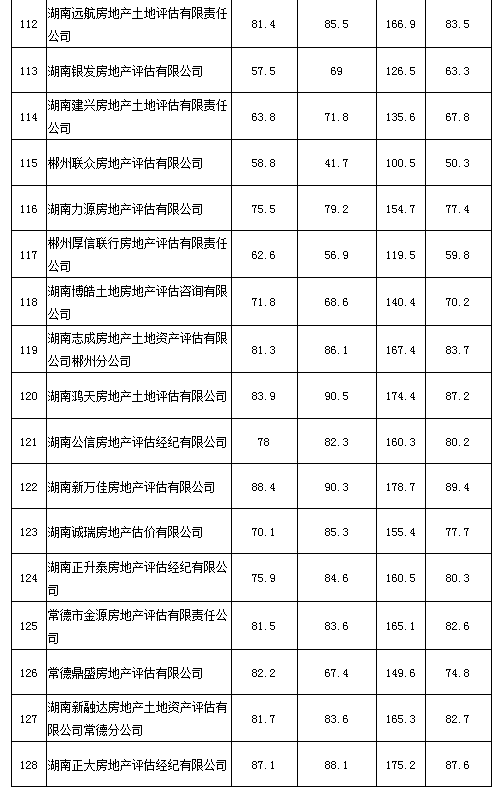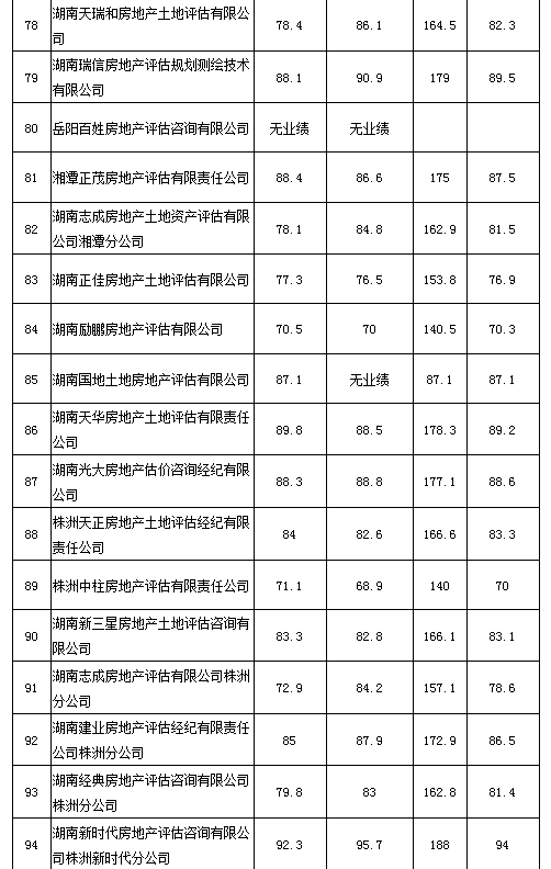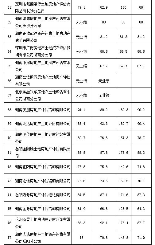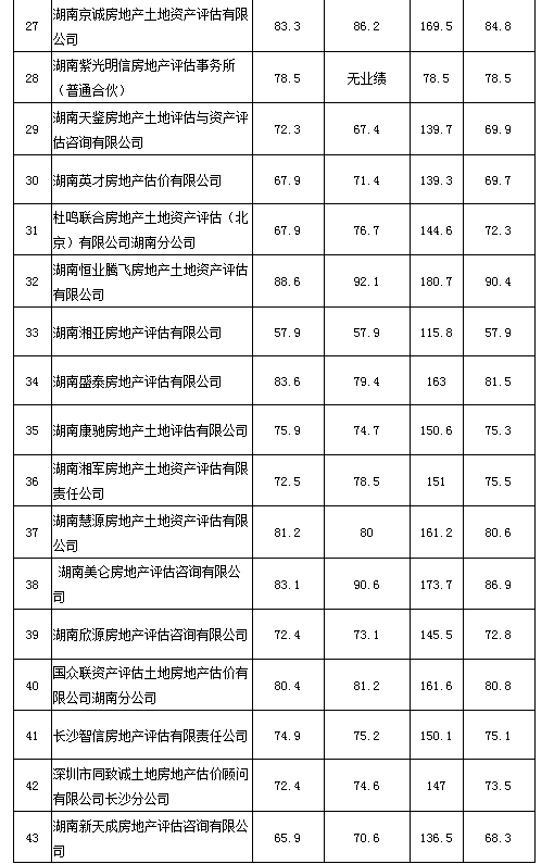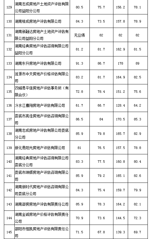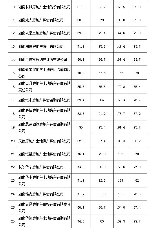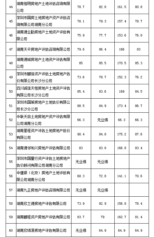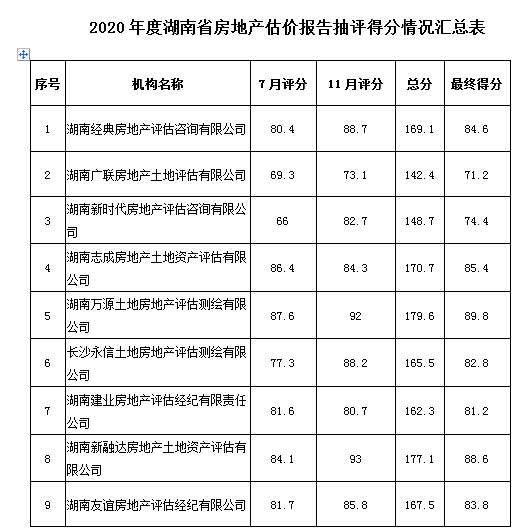 2020年度湖南省房地產(chǎn)估價報告抽評得分情況公示