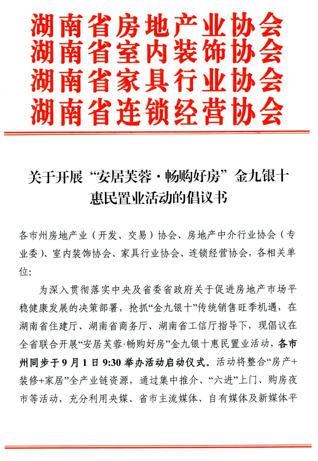 關于開展“安居芙蓉·暢購好房”金九銀十惠民置業活動的倡議書