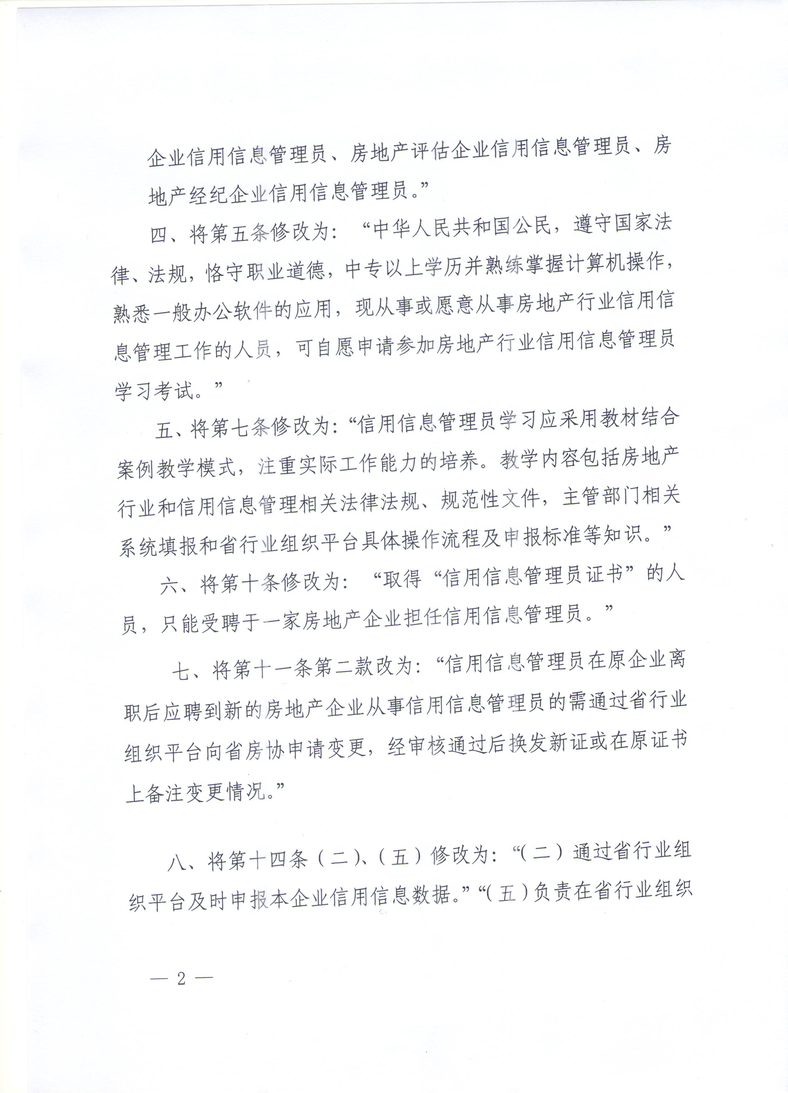 關于修改《房地產行業信用信息管理員制度》的通知