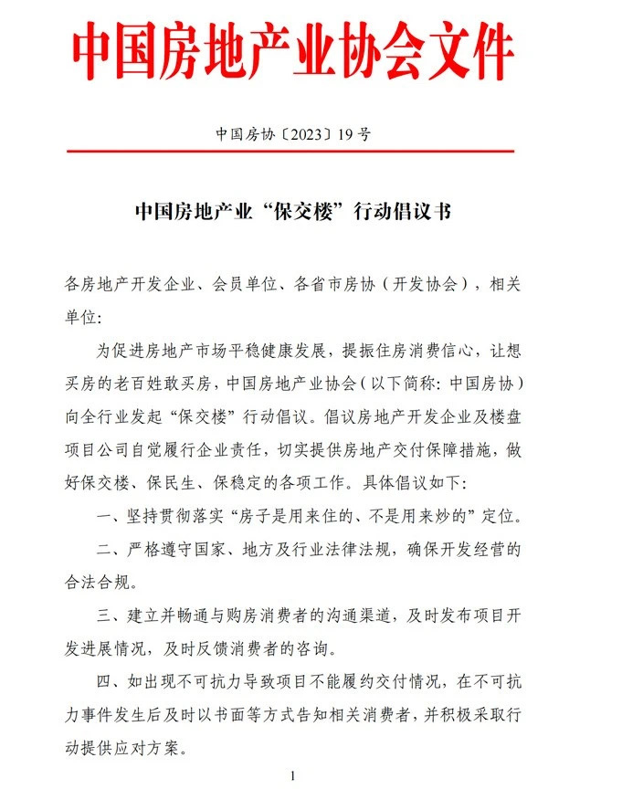 中國(guó)房地產(chǎn)業(yè)“保交樓”行動(dòng)倡議書