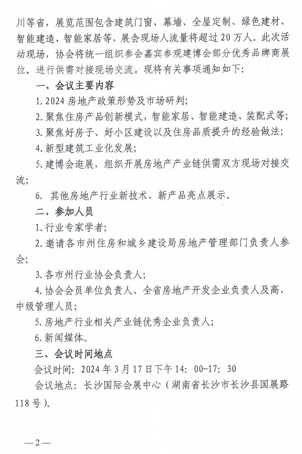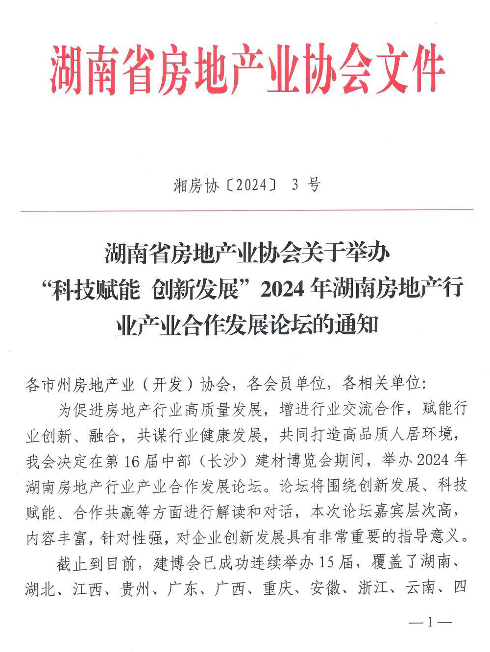 關于舉辦“科技賦能 創新發展”2024年湖南房地產行業產業合作發展論壇的通知