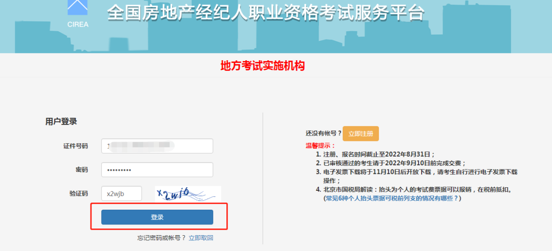 9.輸入證件號(hào)碼、密碼、驗(yàn)證碼登錄。