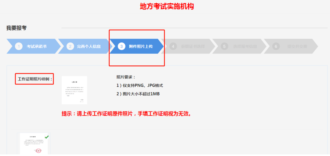 17.上傳工作證明。(照片僅支持PNG、JPG格式,大小不超1MB;需傳原件照片,蓋公章;手寫無(wú)效)