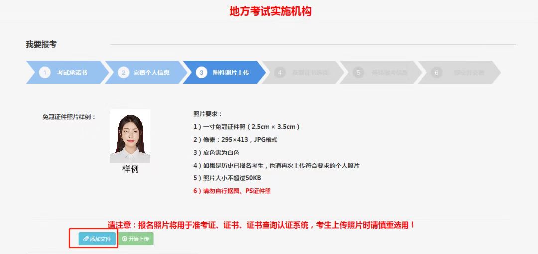 14.上傳1寸白底彩色證件照。(1寸證件照片文件為JPG或JPEG格式,像素為295px×413px,尺寸為1寸證件照(2.5cm×3.5cm),大小約為10KB,底色為白色,不能側(cè)身或帶公司LOGO,自行摳圖、PS證件照無(wú)效)