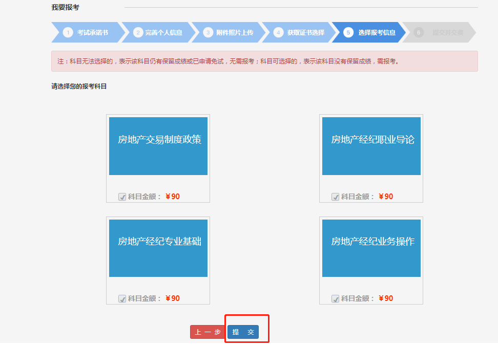 21.選擇報(bào)考科目,考幾科,勾選幾科,點(diǎn)擊“提交”。