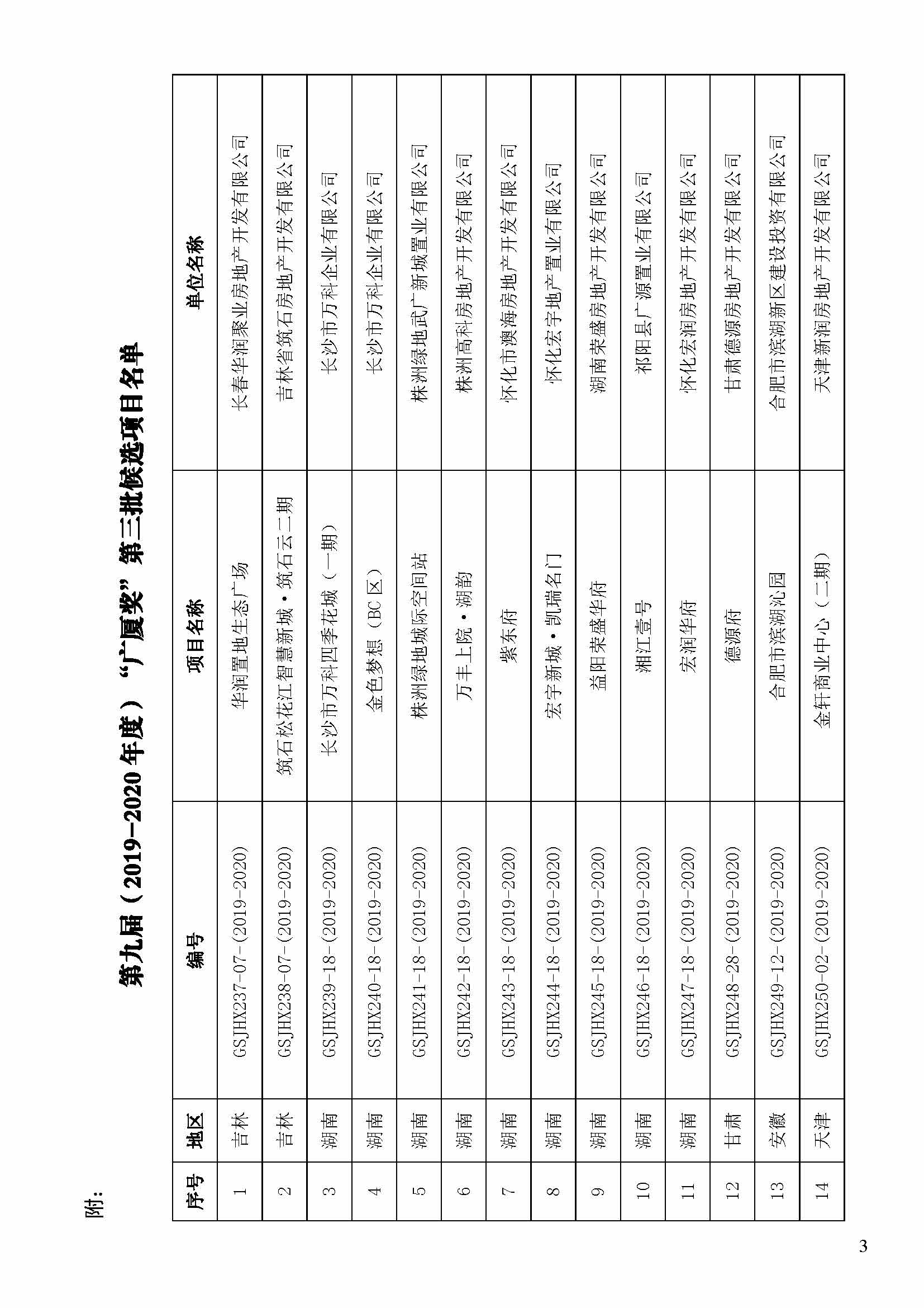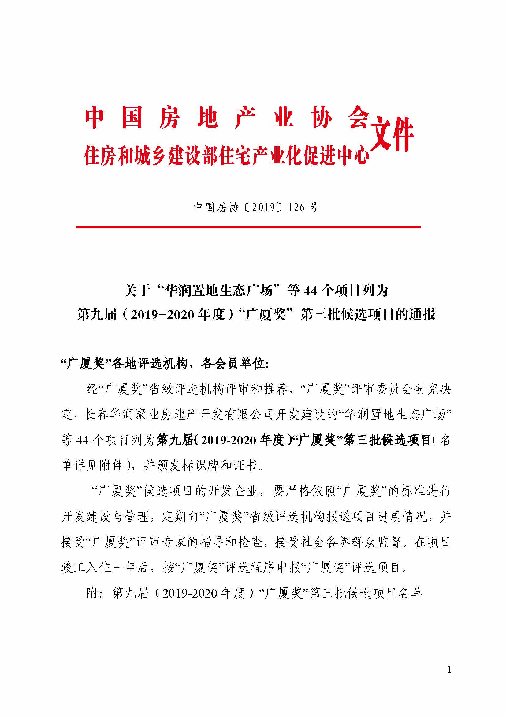 關于“華潤置地生態廣場”等 44 個項目列為第九屆(2019-2020 年度)“廣廈獎”第三批候選項目的通報