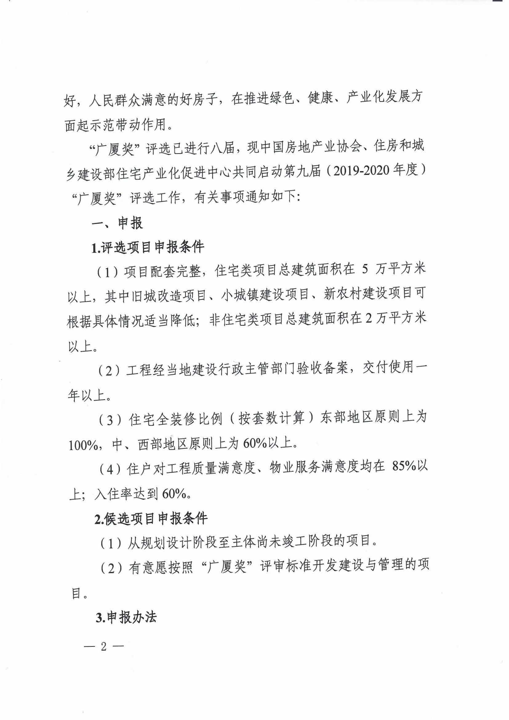 關于開展第九屆(2019-2020年度)“廣廈獎“評選工作的通知