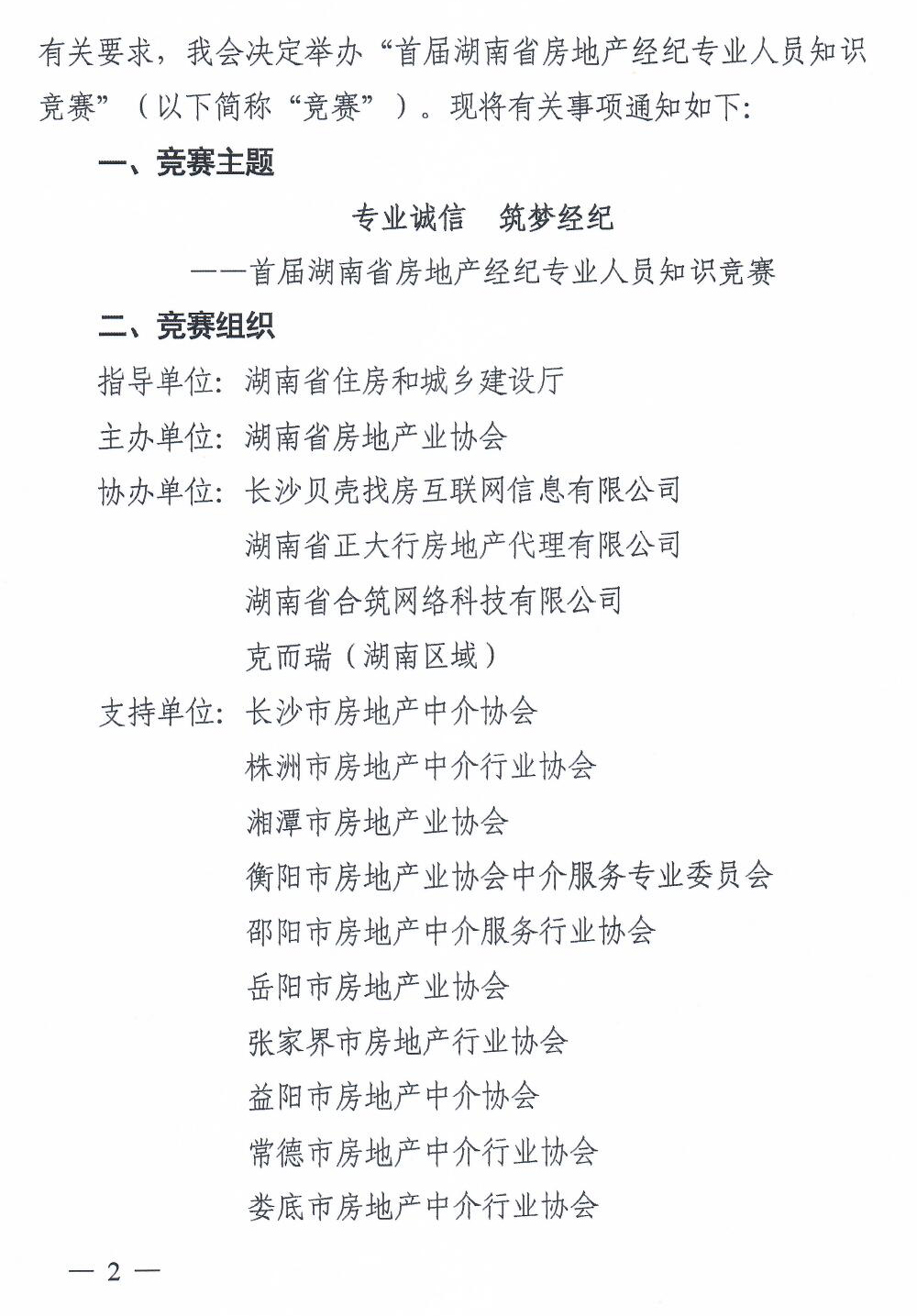 關于首屆湖南省房地產經紀專業人員知識競賽現場講盤的通知
