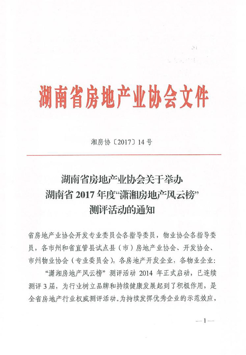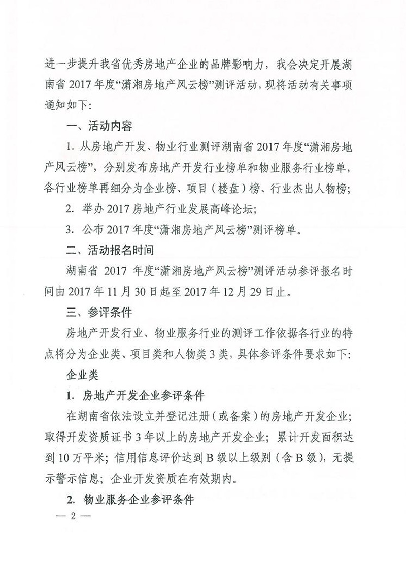 湖南省【瀟湘房地產風云榜】測評活動即將啟幕