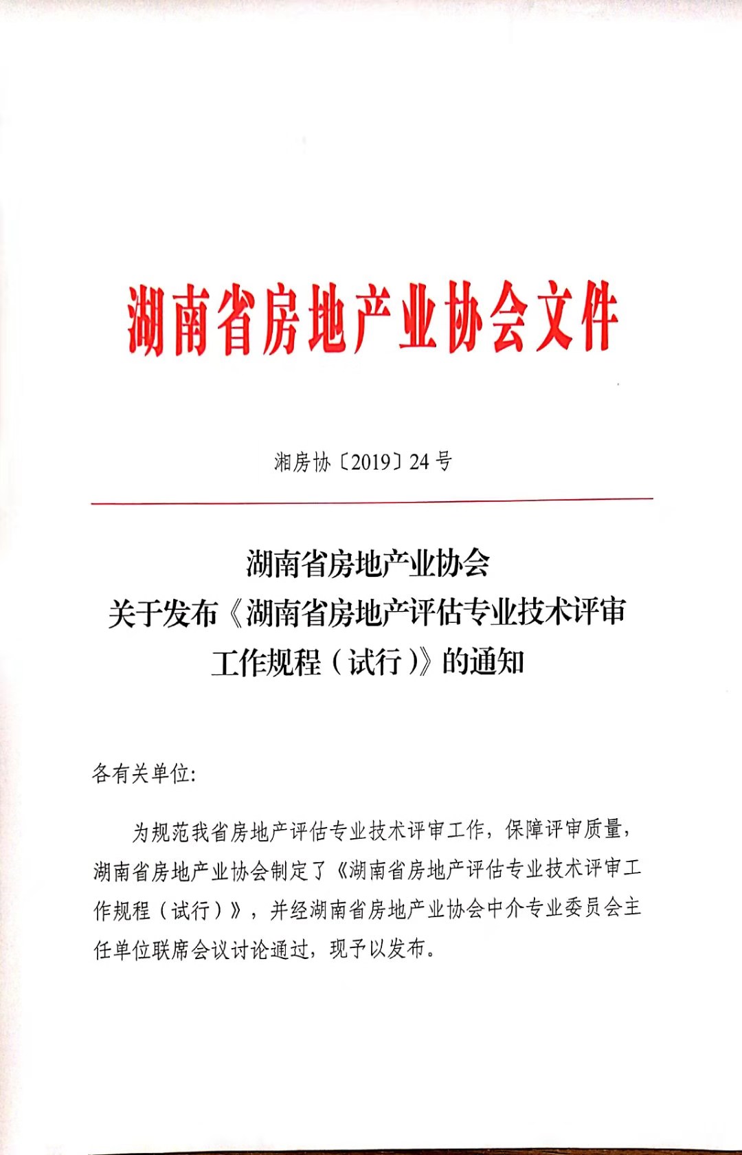 關于發布湖南省房地產評估專業技術評審工作規程(試行)的通知